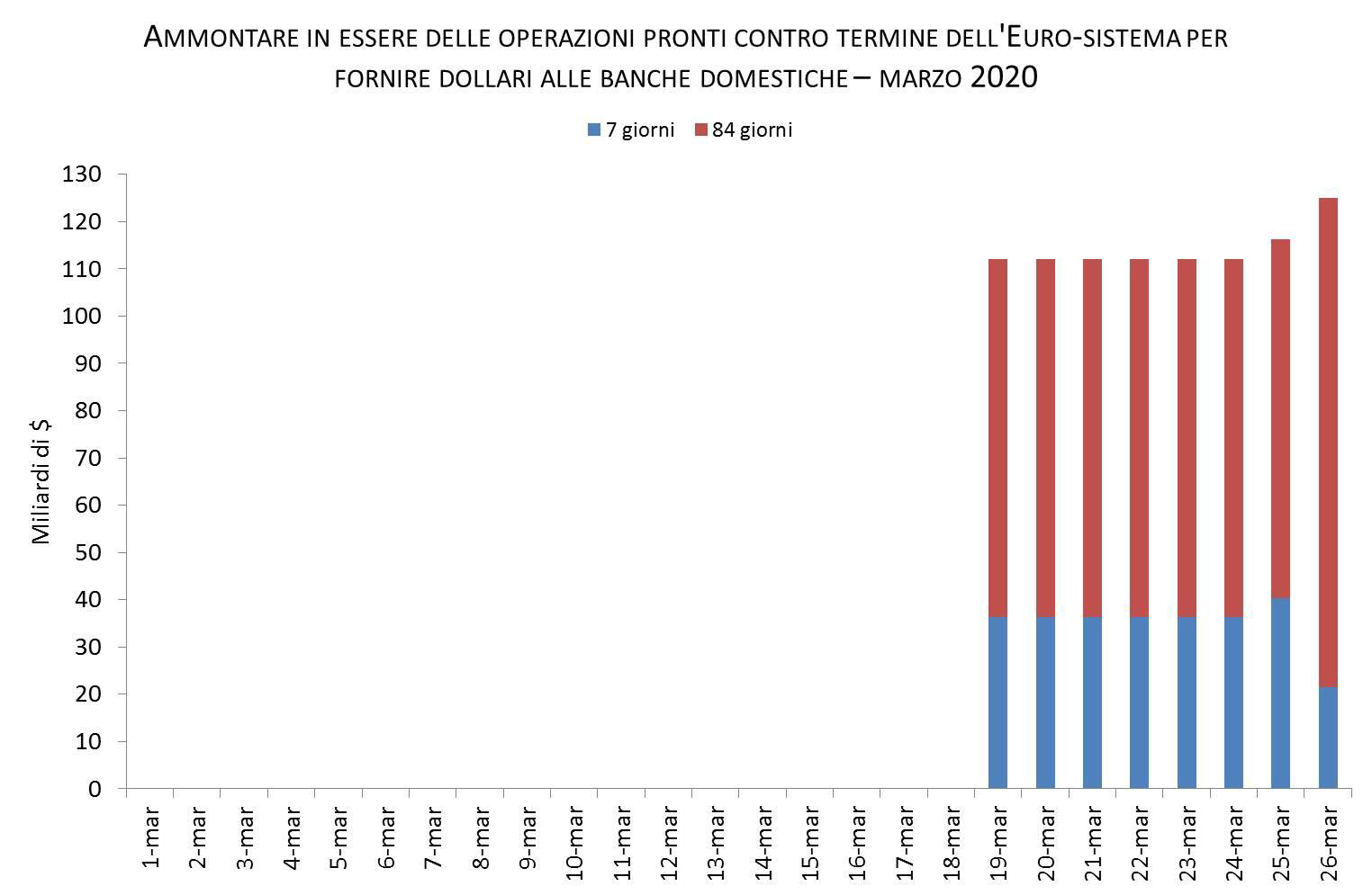 AMMONTARE IN ESSERE DELLE OPERAZIONI PRONTI CONTRO TERMINE DELL'EURO-SISTEMA PER FORNIRE DOLLARI ALLE BANCHE DOMESTICHE - MARZO 2020